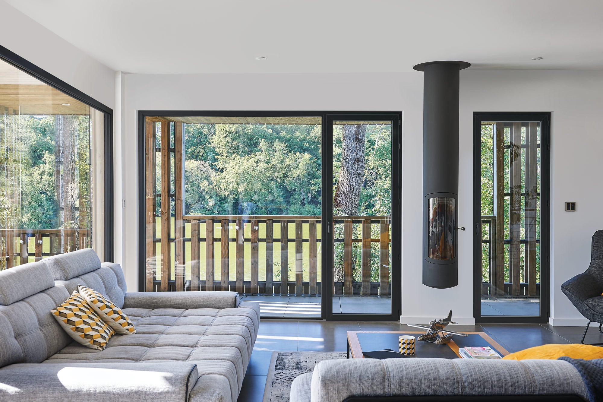 Opter pour un profil 100 % aluminium garantit une uniformité esthétique et une résistance exceptionnelle. L’aluminium, léger et innaltérable, offre une durabilité remarquable face aux intempéries et nécessite un entretien minimal. Avec des profilés fins grâce au principe d’ouvrant caché, ces menuiseries maximisent la surface vitrée, apportant luminosité et modernité. Leur robustesse permet de supporter des vitrages de grande taille, idéaux pour des designs contemporains.