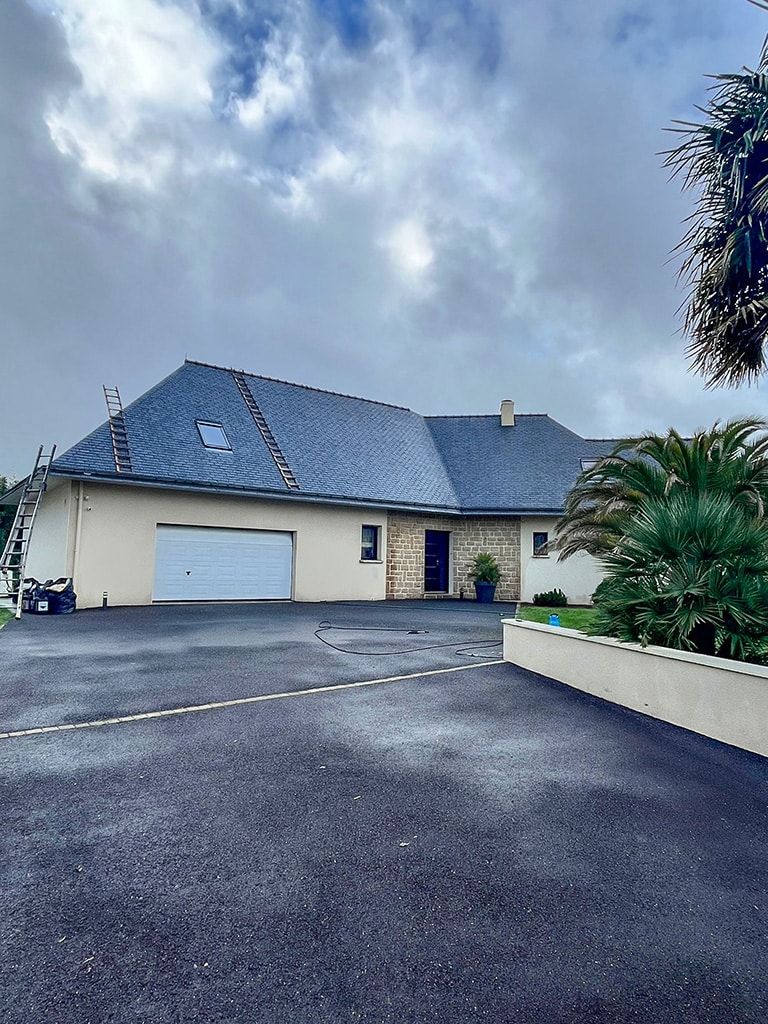 Les résultats de cette intervention sont immédiatement perceptibles. La toiture de cette maison à Landivisiau est désormais mieux protégée contre les intempéries, tout en conservant son apparence naturelle. Nos clients se sont déclarés très satisfaits du résultat, soulignant la qualité du travail effectué et la discrétion de l’hydrofuge incolore.